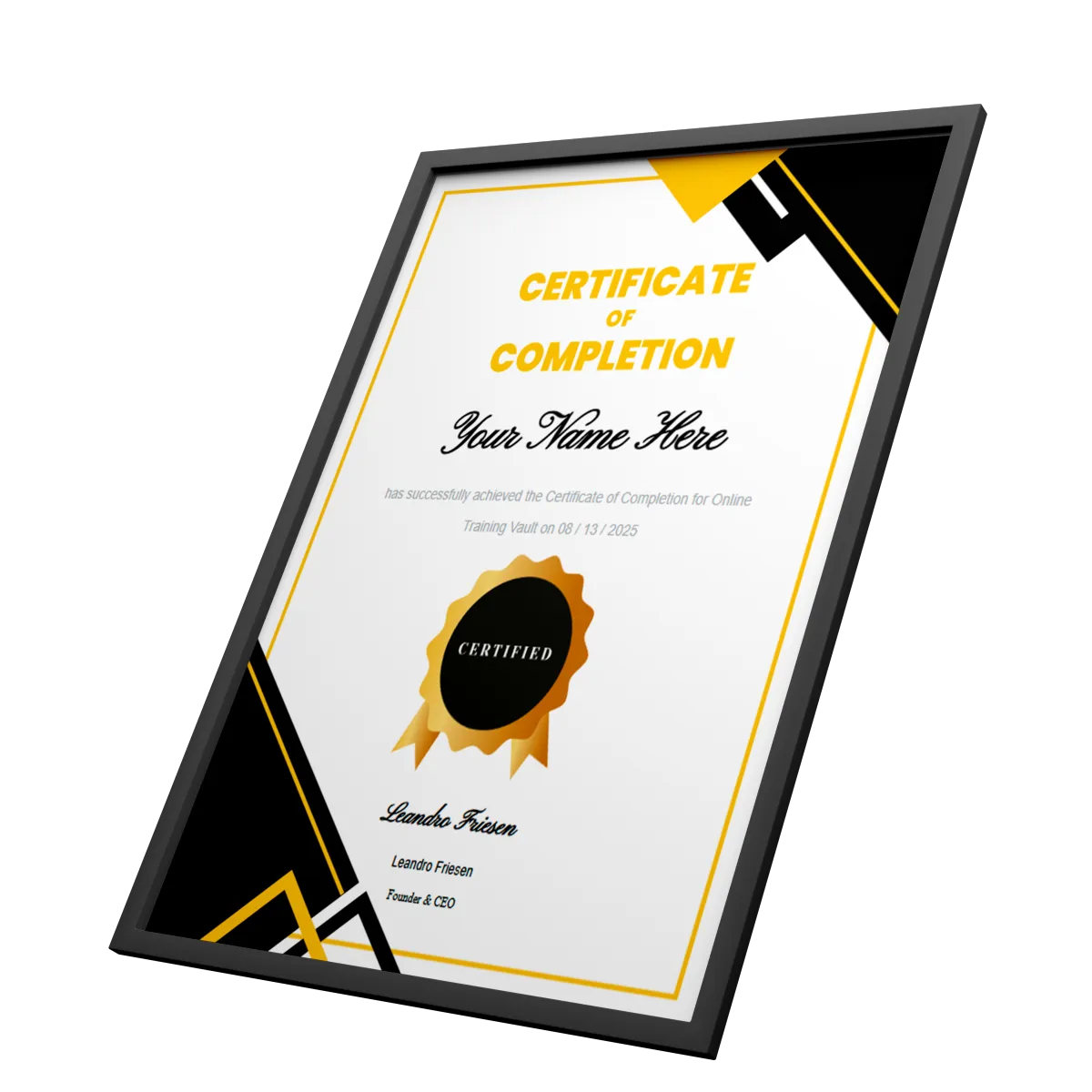 Every course in our program comes with an official Certificate of Completion, recognizing your dedication and expertise in mastering essential skills. Whether you're boosting your career, expanding your business, or establishing authority in your industry, this certification proves your commitment to growth and success. Showcase your achievement with pride and let your credentials speak for themselves.
